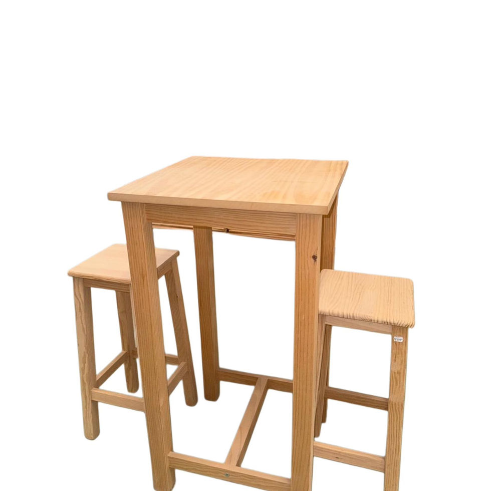 Conjunto de mesa de bar con dos taburetes, perfecto para espacios pequeños o para añadir un toque moderno a tu hogar. La mesa, de diseño compacto y resistente, es ideal para disfrutar de comidas rápidas o reuniones informales. Los dos taburetes incluidos, con asiento de madera y estructura robusta, ofrecen comodidad y estabilidad. Este conjunto se adapta fácilmente a cocinas, bares o áreas de entretenimiento, brindando funcionalidad y estilo en cualquier ambiente.